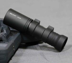 Malkoff E1HT – 325 lumens and 23,000 candela of white light provide a tightly concentrated beam for distance, with a small amount of spill for close range and peripheral lighting. This head will illuminate targets at 100 meters better than the 500 lumen Surefire M300C and 1500 lumen M600DF because of the significantly higher candela. Run time is 45-60 minutes. Malkoff heads are fully potted to withstand recoil during weapon mounted use.